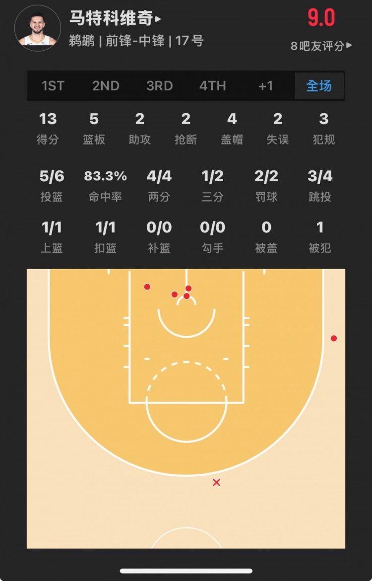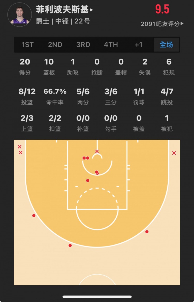 爵士32号秀 凯尔-菲利波夫斯基 登场37.0分钟
