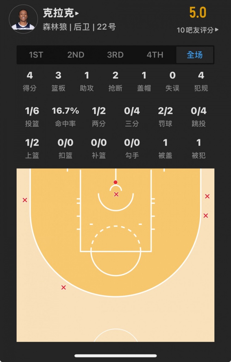 森林狼23年53号秀 杰伦-克拉克 登场24.1分钟