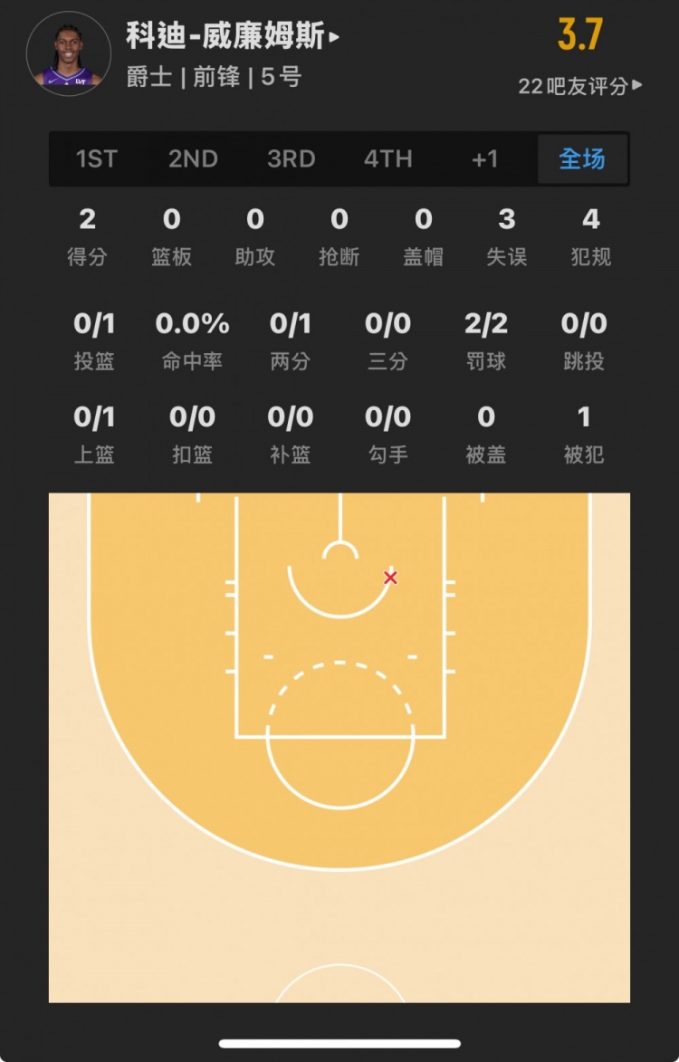 爵士10号秀 科迪-威廉姆斯 登场16.1分钟