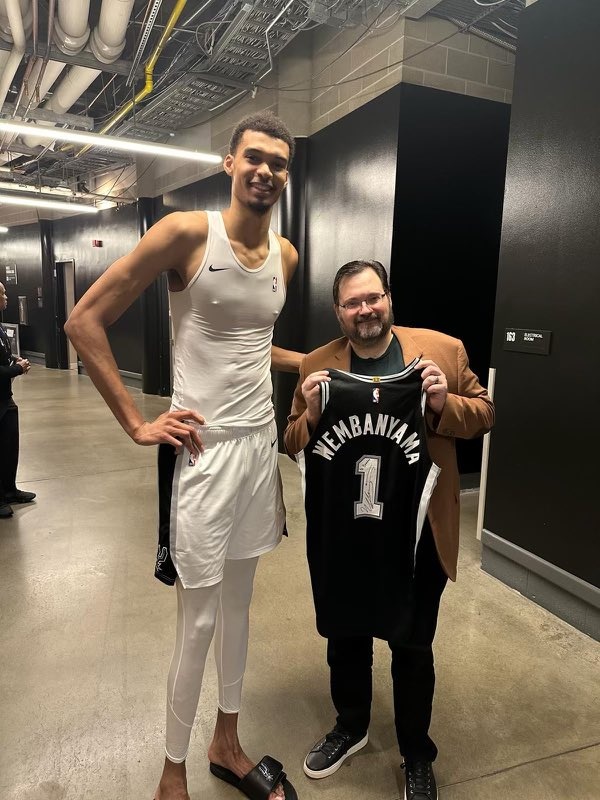 “对于那些好奇的人,我上个月确实在文班亚马来犹他州的时候看到了他打球!比赛结束后,他还抽空和我们见了面,就像大家说的那样,他既亲切又善于表达。(而且,看他打球真是太棒了。)真是个有风度的人啊。@文班亚马”