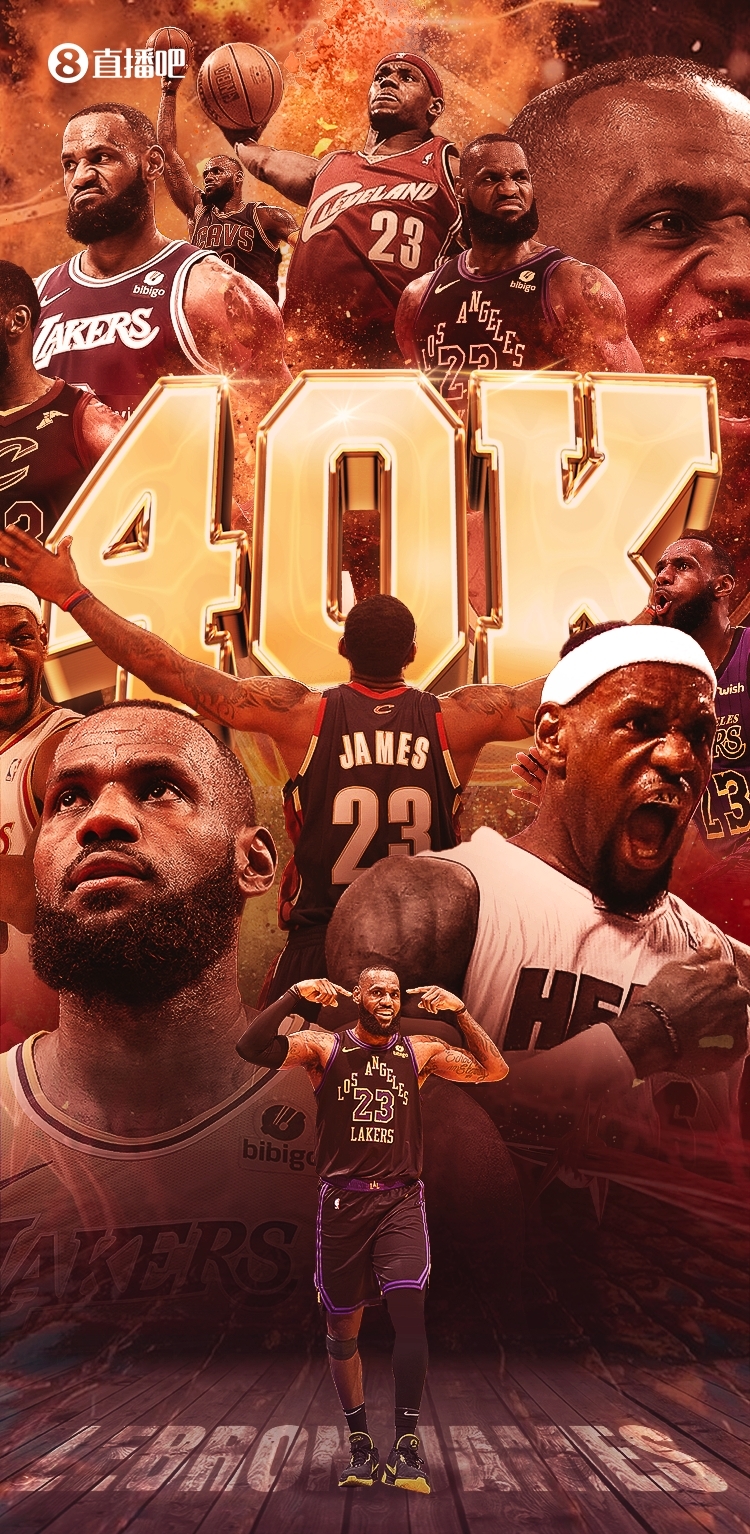 去年今日:詹姆斯生涯总得分突破40000分 NBA历史首人