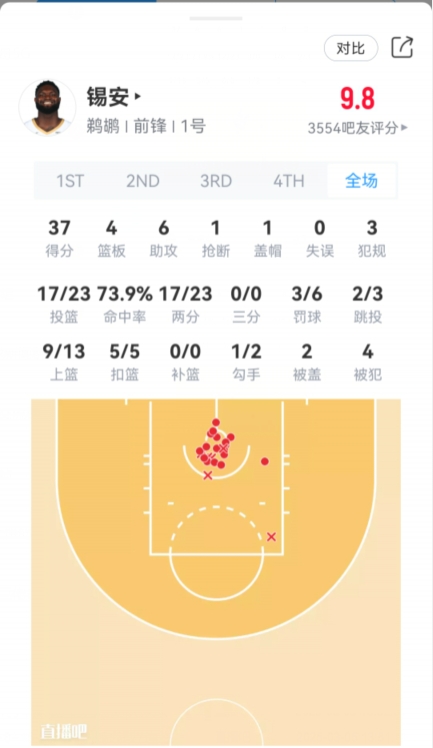 夸张!锡安和他的模板投篮热图对比:一个全在篮下 一个覆盖半场
