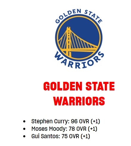 勇士球员2K能力值更新:库里+1至96 穆迪&桑托斯也各+1