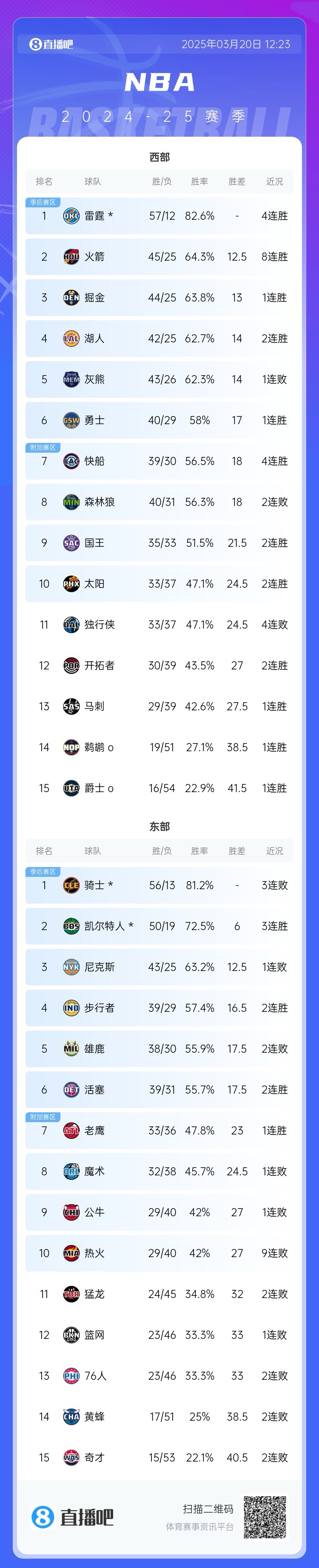 本场比赛过后,太阳与独行侠战绩持平,同为33胜37负,太阳凭借交手战绩优势(3胜1负)反超对手,升至西部第十,重回附加赛区。