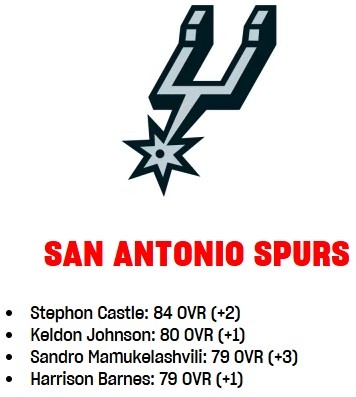 马刺球员2K能力值更新:4号秀卡斯尔+2至84 马穆+3 烤鸡&巴恩斯+1