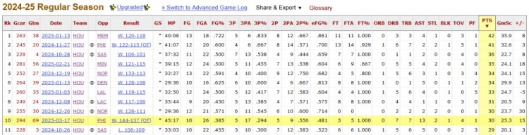 至此,杰伦-格林本赛季砍30+火箭全胜的纪录告破,战绩来到10胜1负。