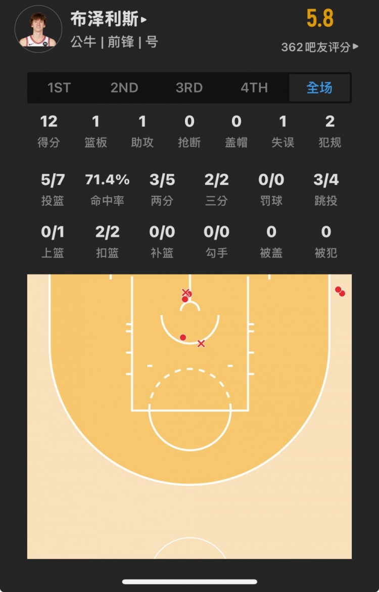 公牛11号秀 马蒂斯-布泽利斯 登场19.1分钟
