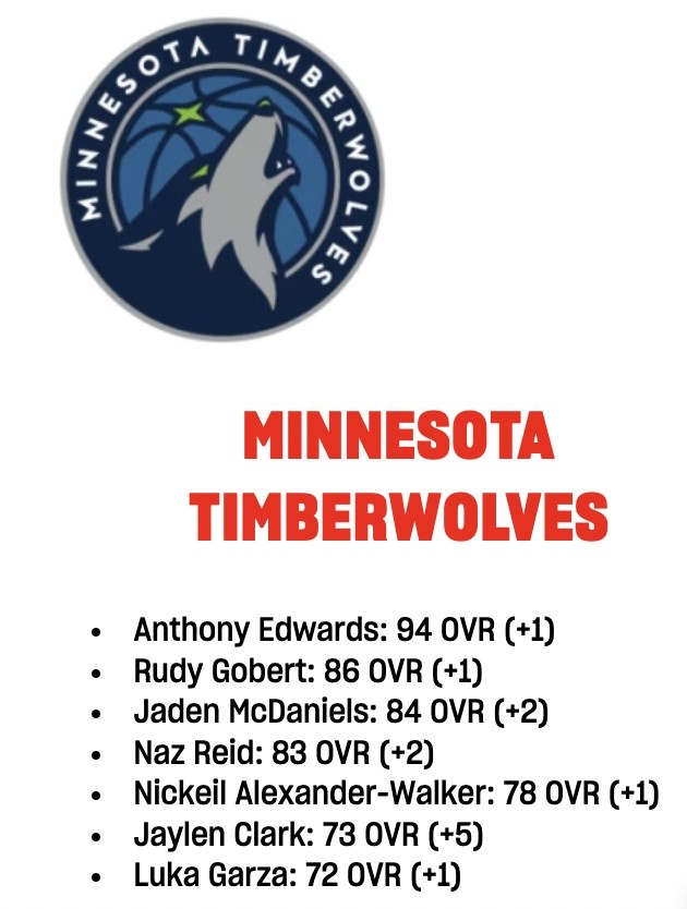 森林狼2K能力值更新:爱德华兹+1至94 戈贝尔+1至86 全队7人涨分