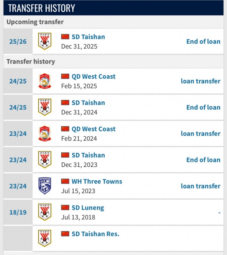 德转显示段刘愚将再度租至青岛西海岸,租期至今年12月31日