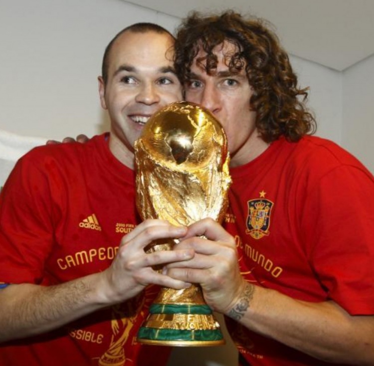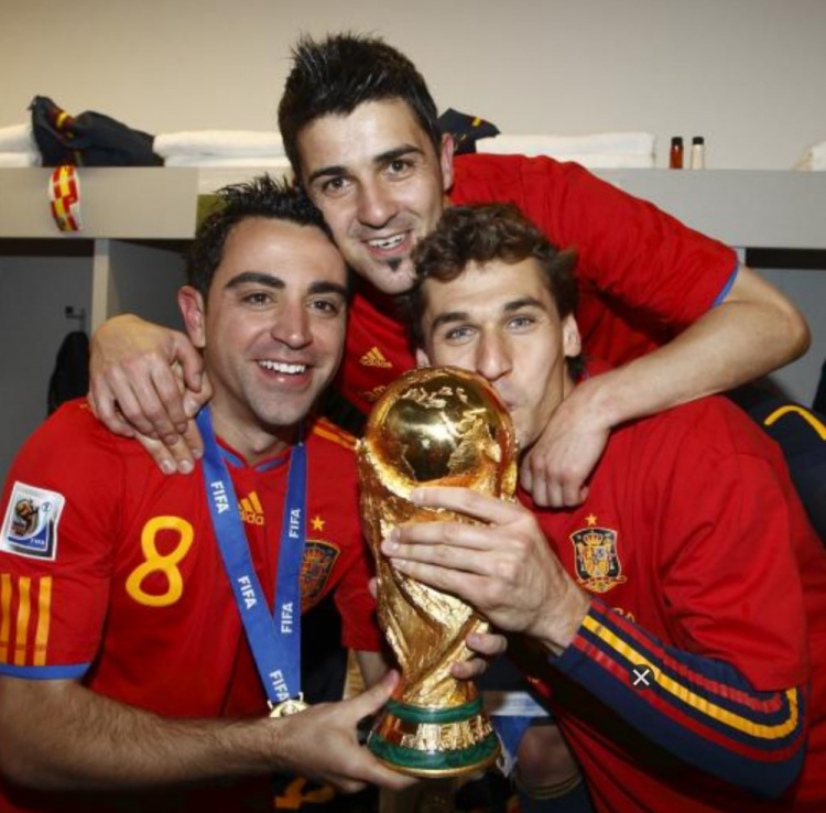 在“sefutbol”的帖子中,有几张那届世界杯的照片,上面是几位冠军球员的照片,其中一张照片显示了一群球员,包括普约尔、大卫-比利亚、伊涅斯塔、马塔、哈维、略伦特、阿尔比奥尔、马切纳和哈维-阿隆索。