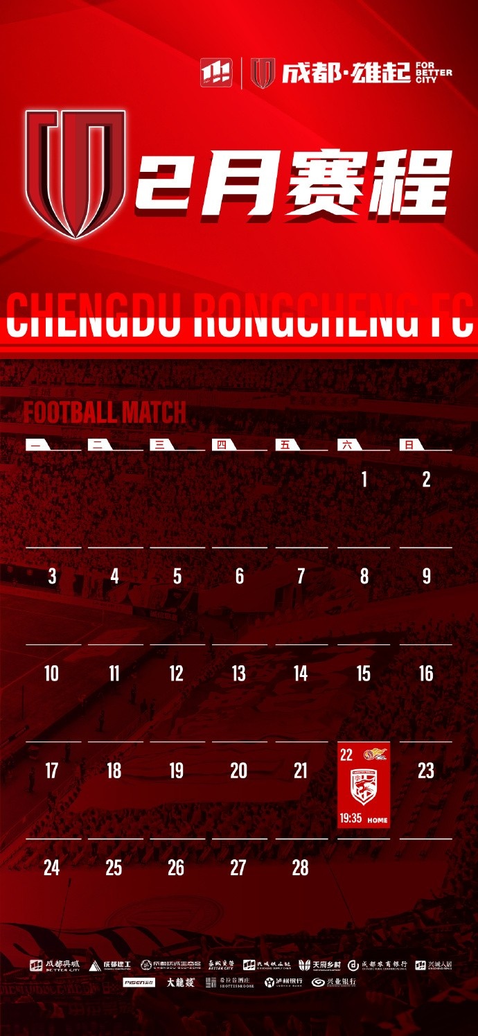 新赛季开启!成都蓉城2月赛程来啦!
