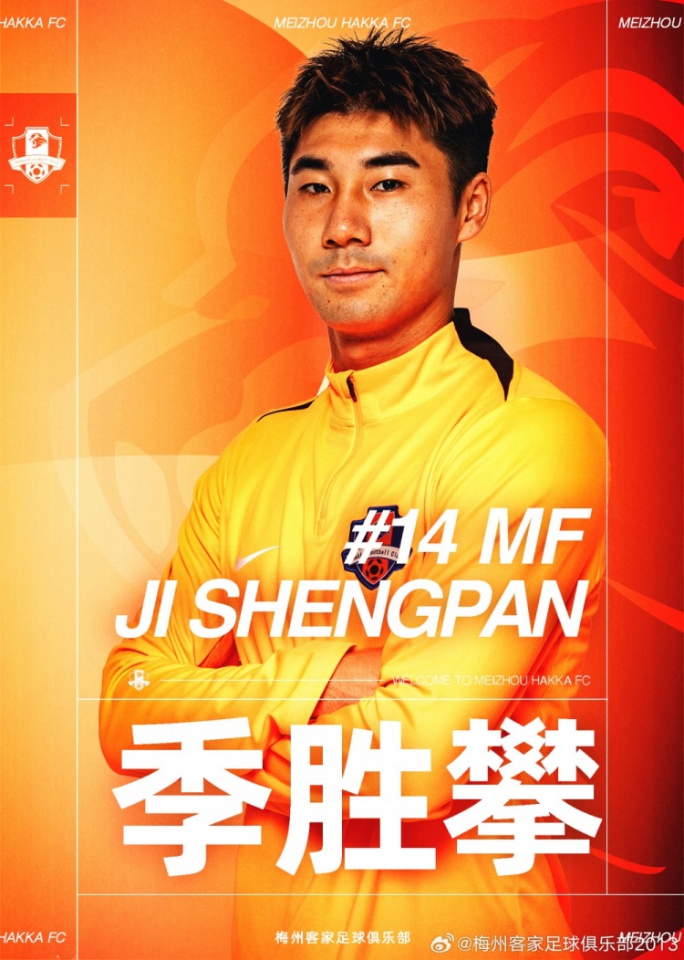 与球员本人友好协商一致,季胜攀已完成签约手续,成功加盟梅州客家足球俱乐部,将随队征战2025年中超联赛及各项赛事。