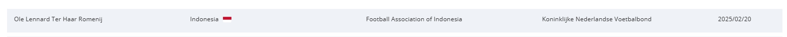 同组对手印尼方面,他们的新晋归化罗梅尼已于昨天从荷兰足协转换至印尼足协,这也就意味着他能在3月代表印尼出战。