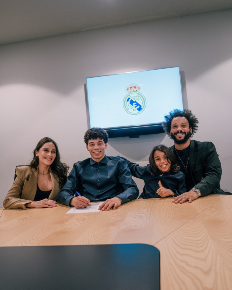 马塞洛15岁儿子恩佐与皇马续约,马塞洛在社交媒体上晒出恩佐签字的照片,配文:“祝贺你,我的儿子,我们为你感到骄傲。”