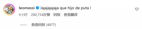 梅西在评论区评论道:“哈哈哈哈,你这狗娘养的。”