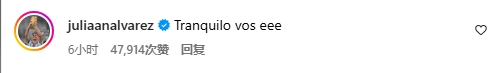 阿尔瓦雷斯也给德保罗评论道:“你冷静点。”小西蒙尼也出现在评论区,他写道:“哎哟,不愧是帅哥啊,妈呀呀呀????????”