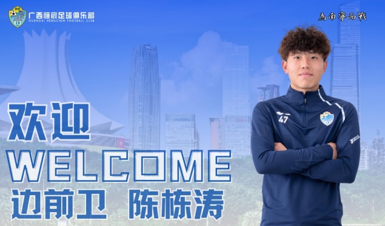 ​作为一名左脚球员,陈栋涛极具潜力,身体素质出色,脚下技术细腻,盘带能力强。他的加盟将进一步优化球队年龄结构,丰富边路位置人员储备,期待他能为球队注入新的活力。新赛季他将身披47号球衣征战各项赛事。