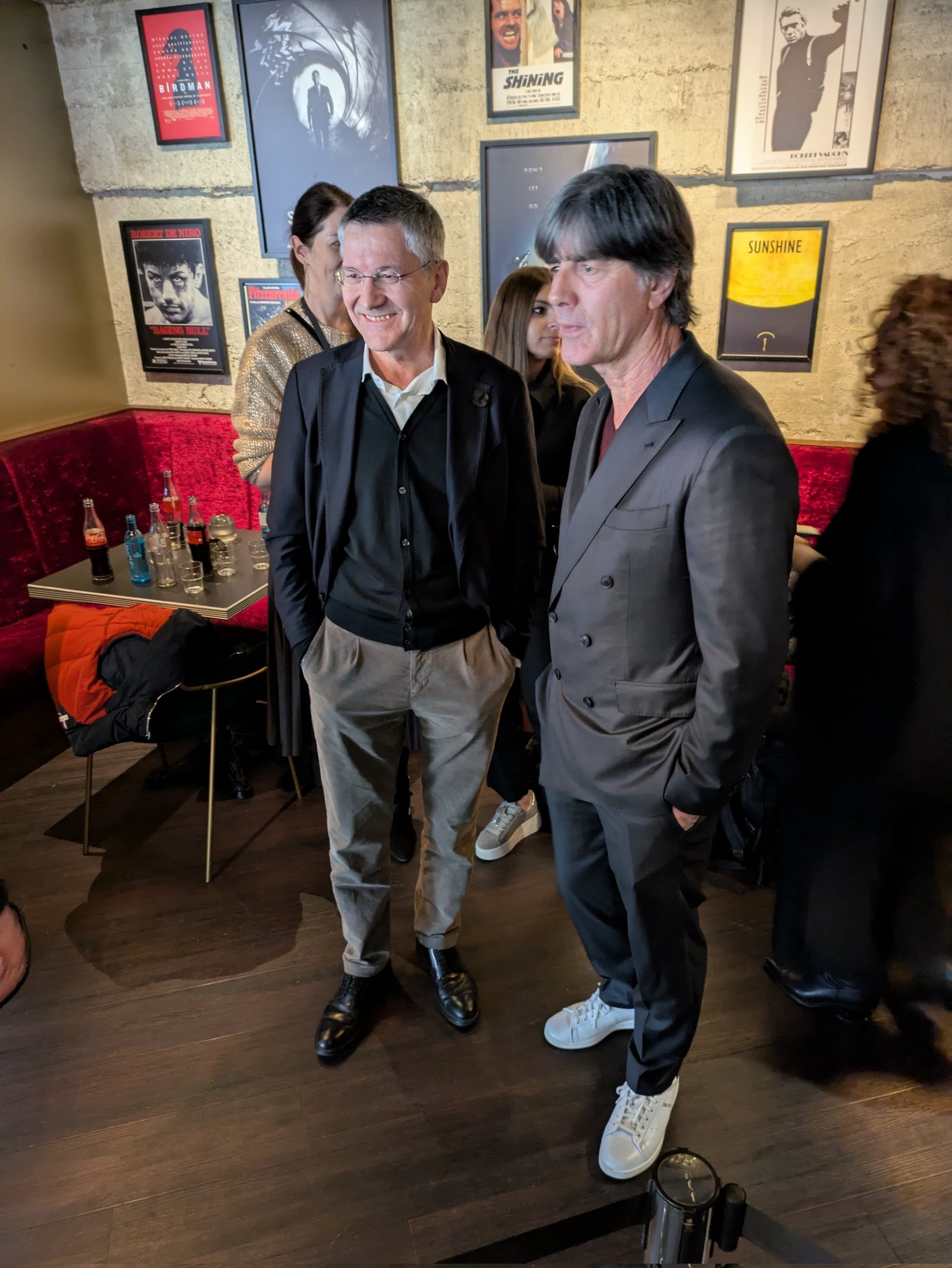 现场记者拍摄到前德国队主帅勒夫、现拜仁主席海纳、拜仁荣誉主席赫内斯等多位德国足坛名宿现身。