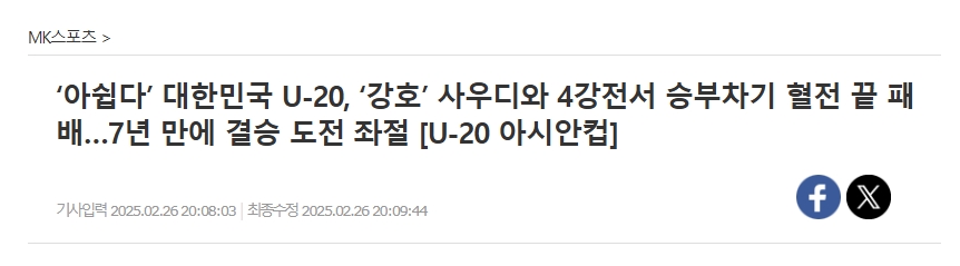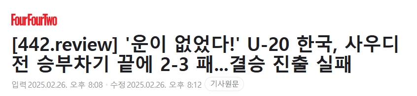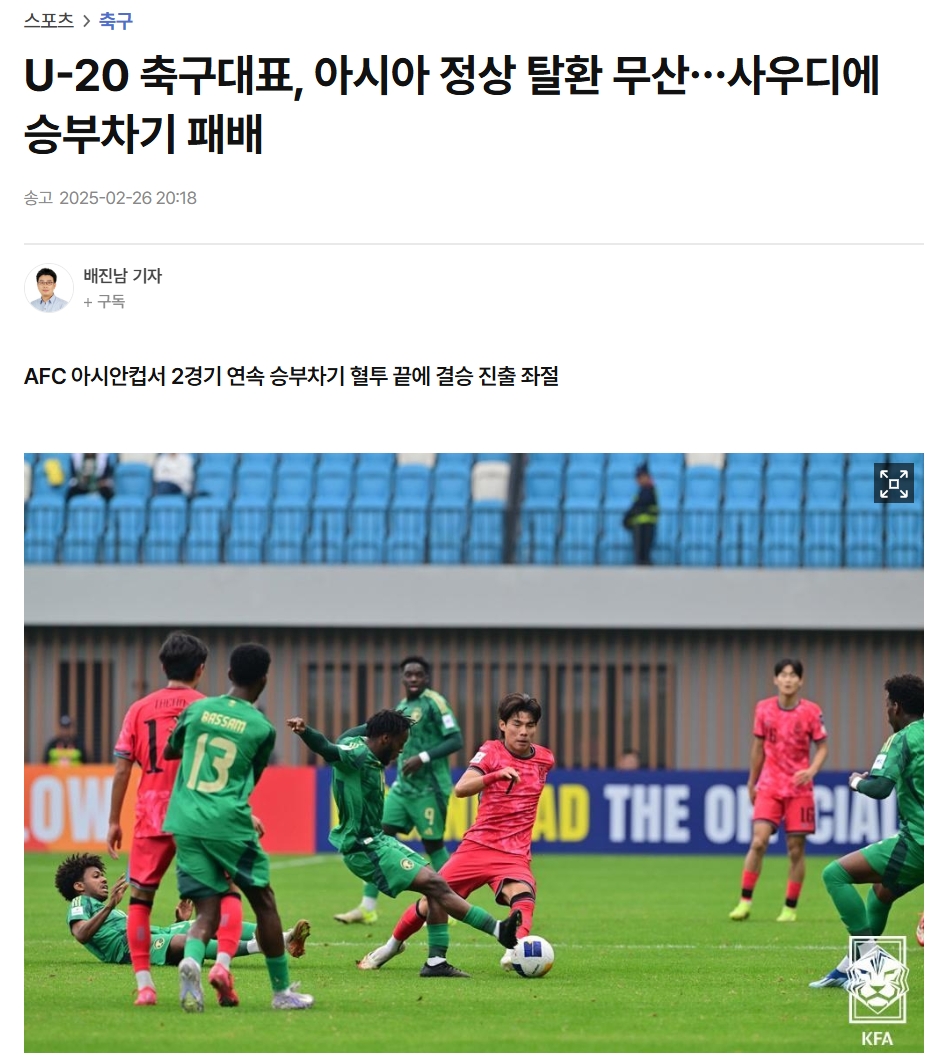 3月1日韩日决赛的梦想已经破灭……亚洲杯半决赛中,韩国U20在点球大战中输给沙特阿拉伯队