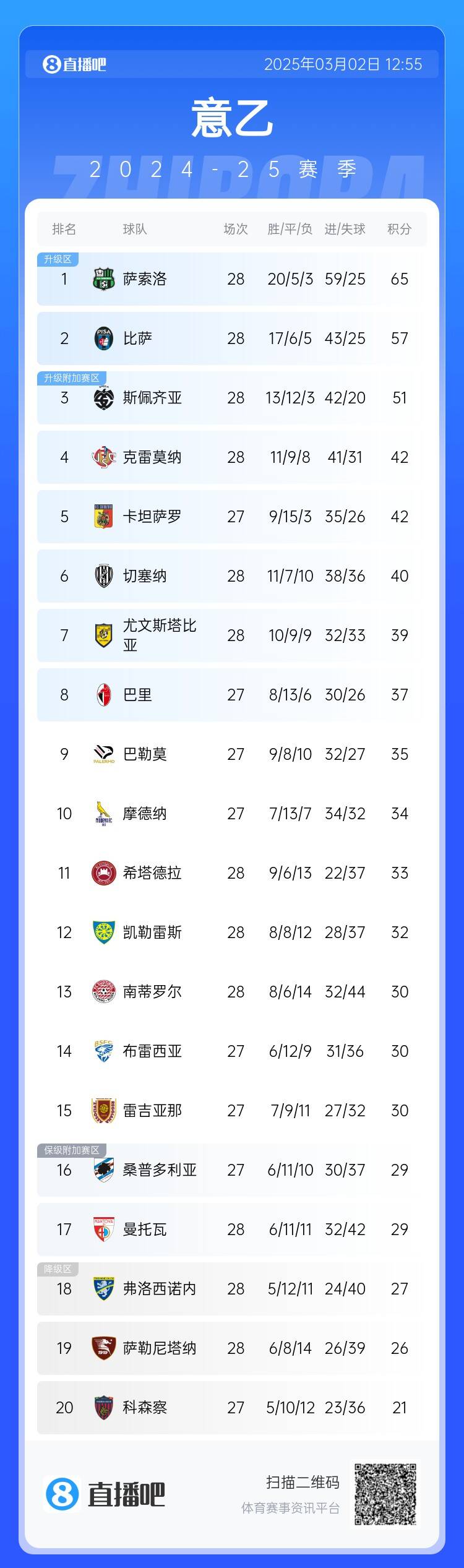而在直通区的分数上,萨索洛已经14分领跑直通区,几乎已经确定了一个直接升级名额。