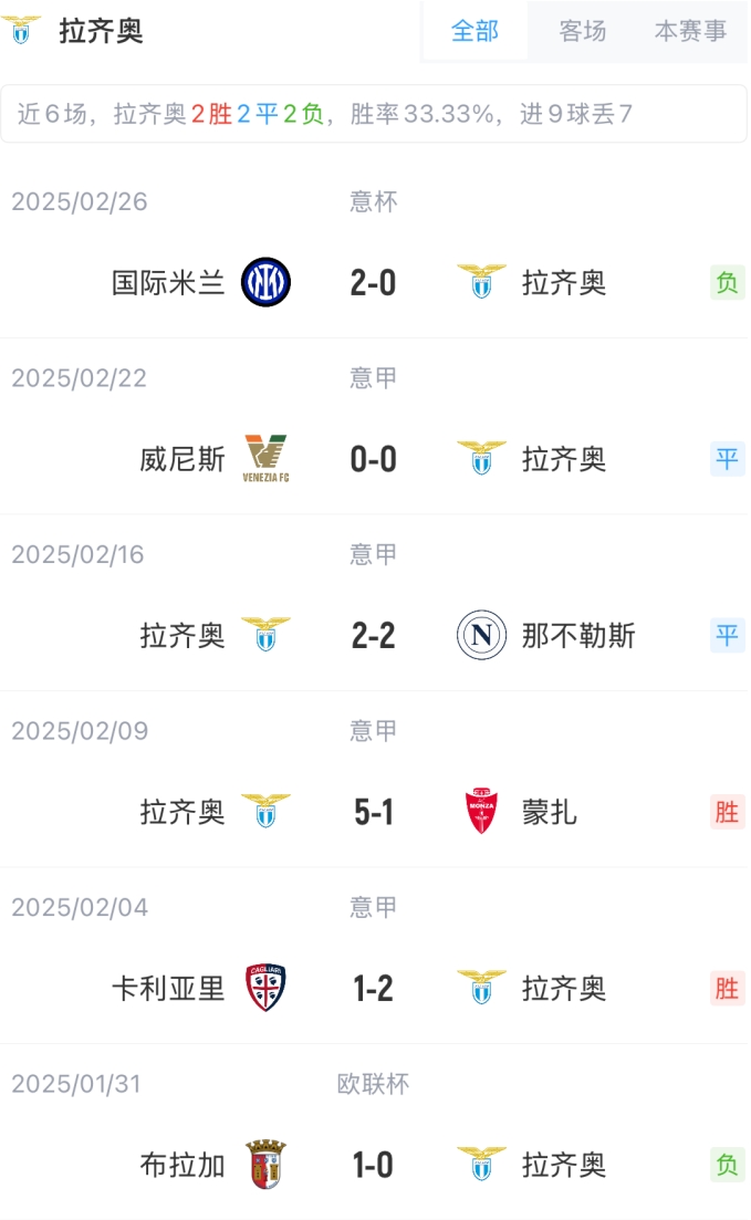 拉齐奥首发:94-普罗维德尔、2-萨缪尔-吉奥特、30-塔瓦雷斯、34-吉拉、77-马鲁西奇、6-罗维拉、8-贡多齐、20-查奥纳、10-扎卡尼、19-布莱-迪亚、18-伊萨克森