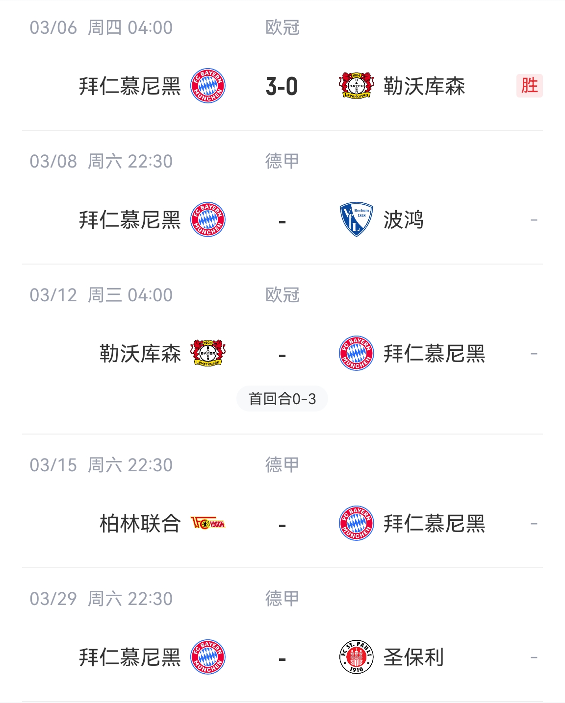 拜仁后续赛程↓