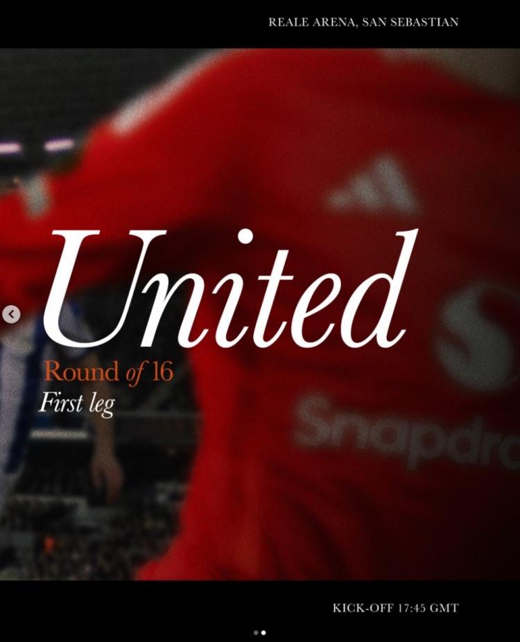 曼联发布为此役制作的海报,德里赫特出镜,曼联社媒配文:“欧联杯淘汰赛现在开始。”