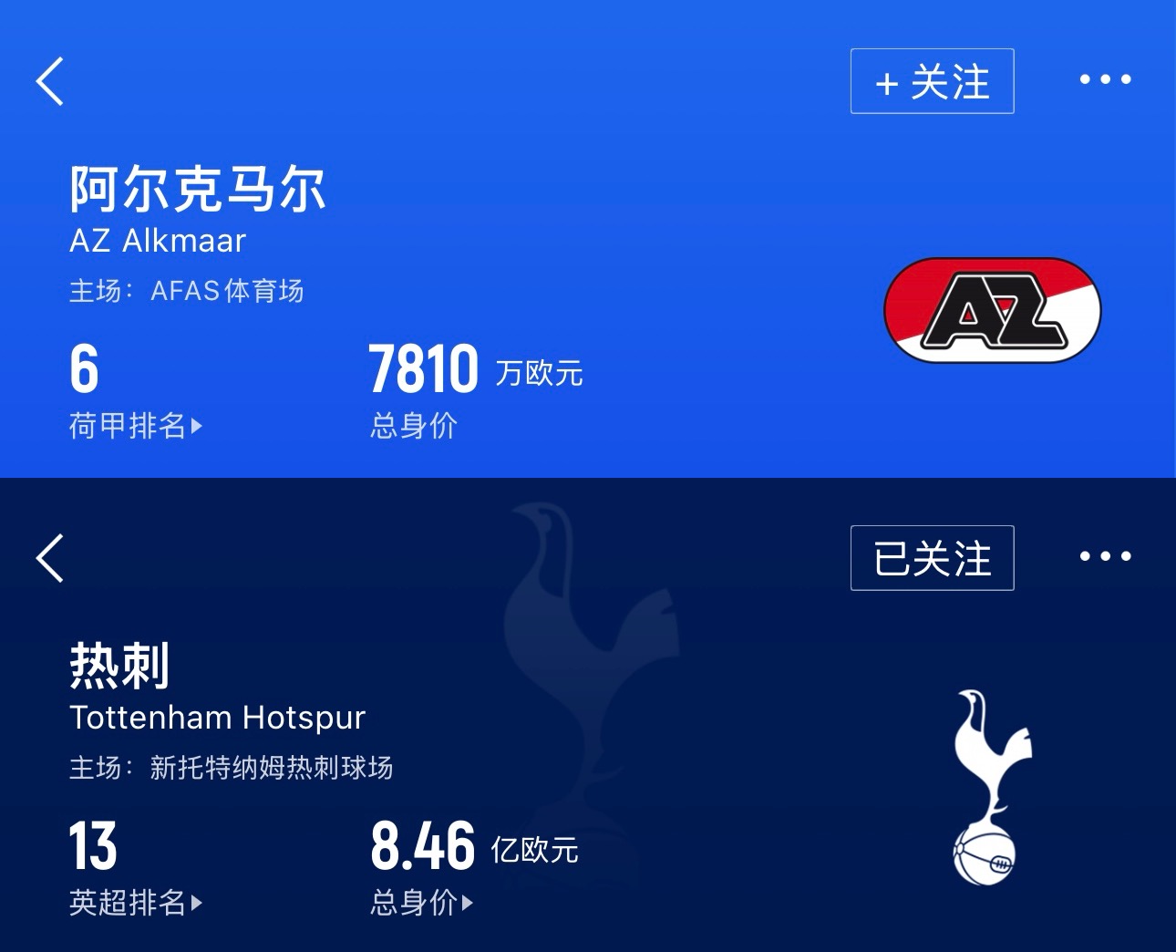 钉上耻辱柱?热刺与阿尔克马尔阵容身价差7.68亿欧,创造尴尬纪录