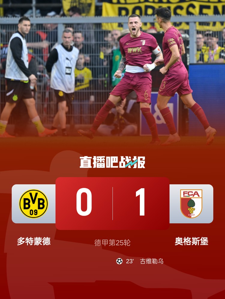 德甲第25轮,多特主场0-1不敌奥格斯堡。上半场,古维勒乌头球吊射破门;下半场,布兰特破门但越位在先,厄兹詹自摆乌龙但古维勒乌越位在先,埃森德破门但亚基奇越位。