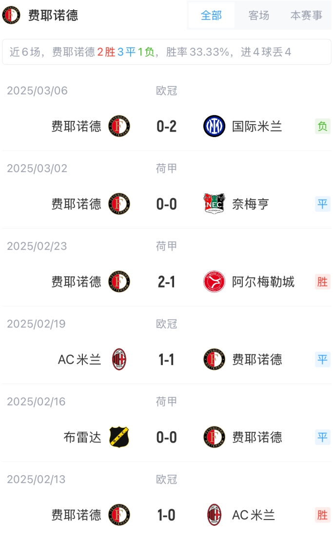 费耶诺德首发:22-韦伦罗伊特、16-布埃诺、33-汉茨科、3-比伦、26-吉瓦罗-雷德、17-伊万努舍奇、5-斯马尔、7-莫德尔、57-斯利蒂、23-哈迪-穆萨、9-上田绮世
