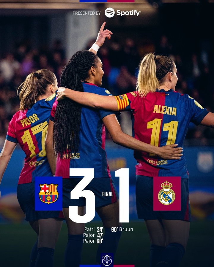 今天凌晨,巴萨女足在皇后杯半决赛次回合主场3-1击败皇马女足,总比分8-1淘汰对手,进入决赛。
