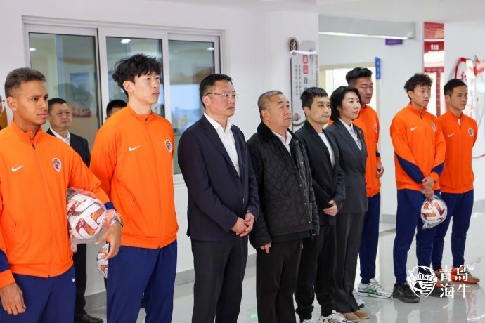 青岛市民政局局长江联军、青岛海牛足球俱乐部董事长乔伟光,总经理张冬、副总经理冯文静,球员宋龙、牟鹏飞、刘军帅、林创益、席尔瓦、奥古斯托参加了此次活动。