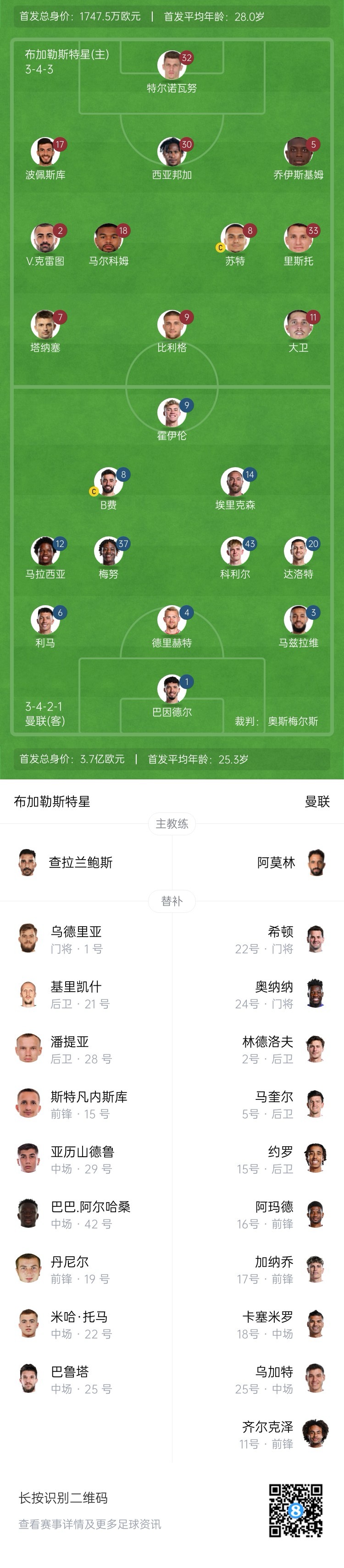 1月31日讯 欧联杯联赛阶段第8轮,布加勒斯特星主场迎战曼联比赛即将打响。在赛前公布的阵容中,加纳乔和阿玛德均替补待命。在接受采访时,阿莫林解释了原因。