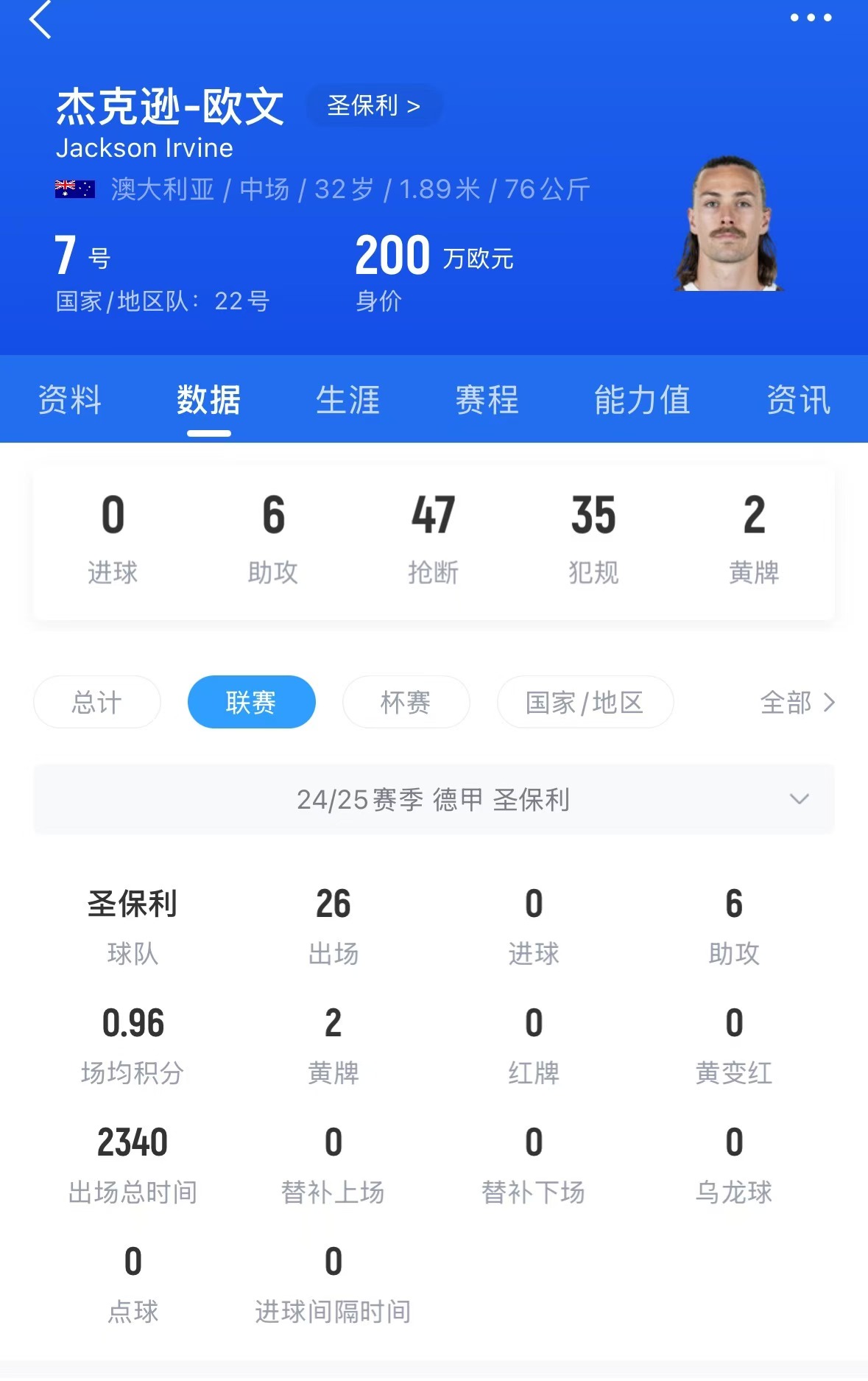 值得一提的是,杰克逊-欧文是德甲主力球员,本赛季为圣保利联赛出场26次,并有6次助攻,目前德转身价200万欧元。