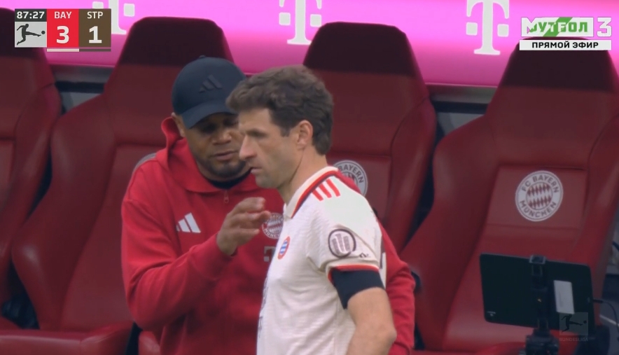 伊藤洋辉是第58分钟替换格雷罗登场的,拜仁第85分钟用完了最后的换人名额。孔帕尼也明白这一点,他把穆勒叫到场面交代一下站位。