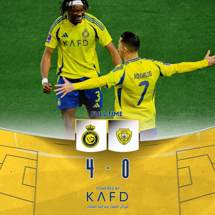 亚冠精英联赛第7轮,C罗梅开二度,利雅得胜利4-0迪拜祈祷。