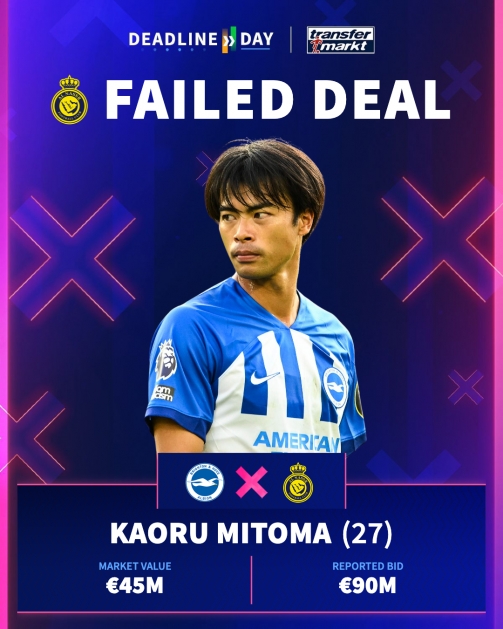 球员身价4500万欧,胜利报价6500万欧,后加价至9000万欧,遭布莱顿拒绝。
