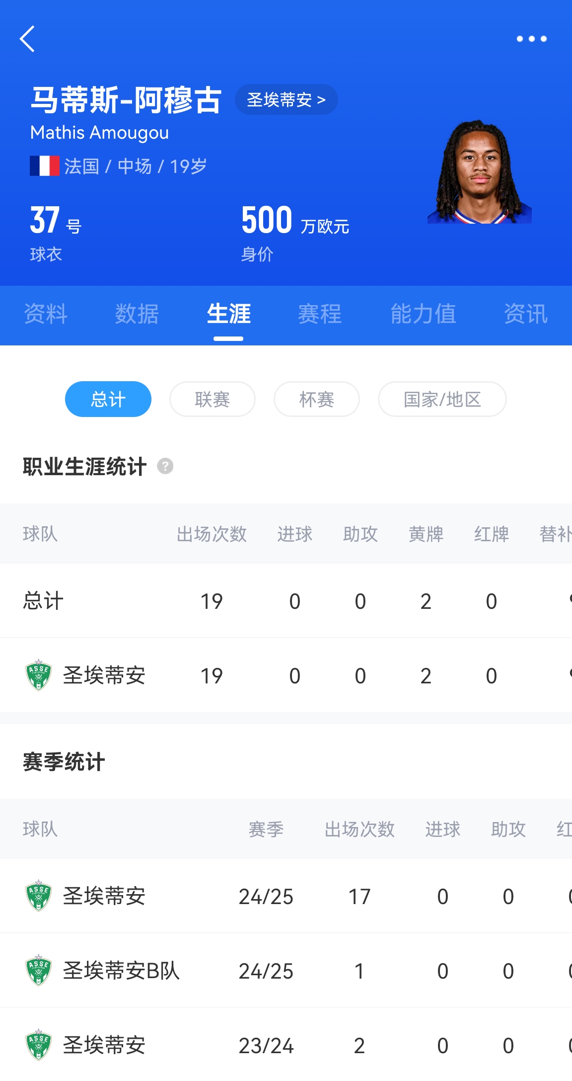阿穆古是圣埃蒂安青训出身,上赛季完成一线队首秀,截至目前共为圣埃蒂安一队出场19次。