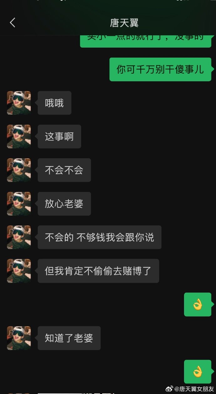 难收场!“唐天翼女友”账号再曝聊天记录,内含唐天翼戒赌保证书