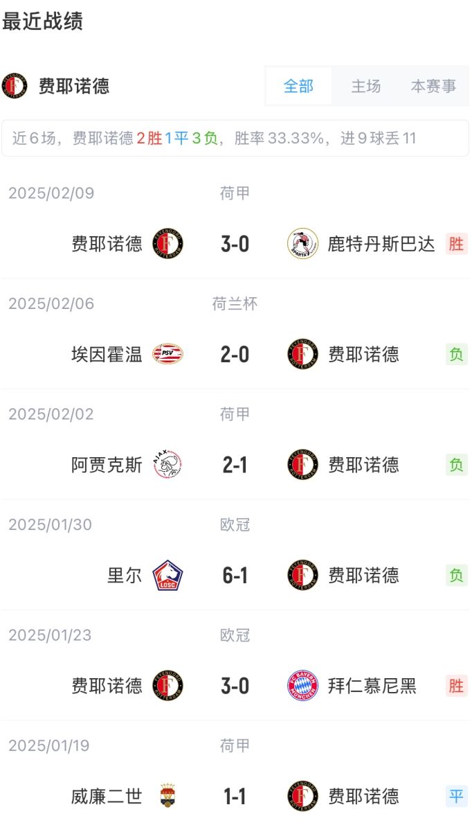 费耶诺德首发:22-韦伦罗伊特、26-吉瓦罗-里德、3-托马斯-比伦、33-汉茨科、5-斯马尔、7-莫德尔、27-米兰博、8-昆滕-廷伯、23-哈迪-穆萨、9-上田绮世、14-伊戈尔-派修