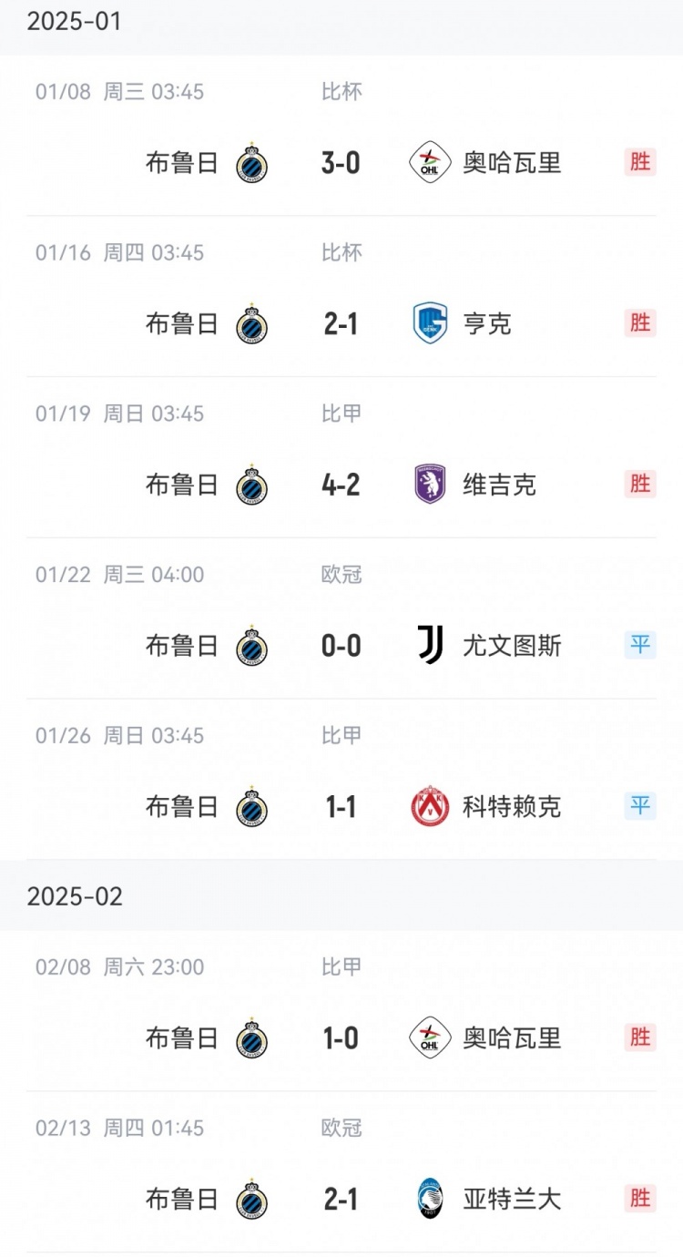 算上本场比赛,布鲁日已经连续16个主场13胜3平保持不败↓